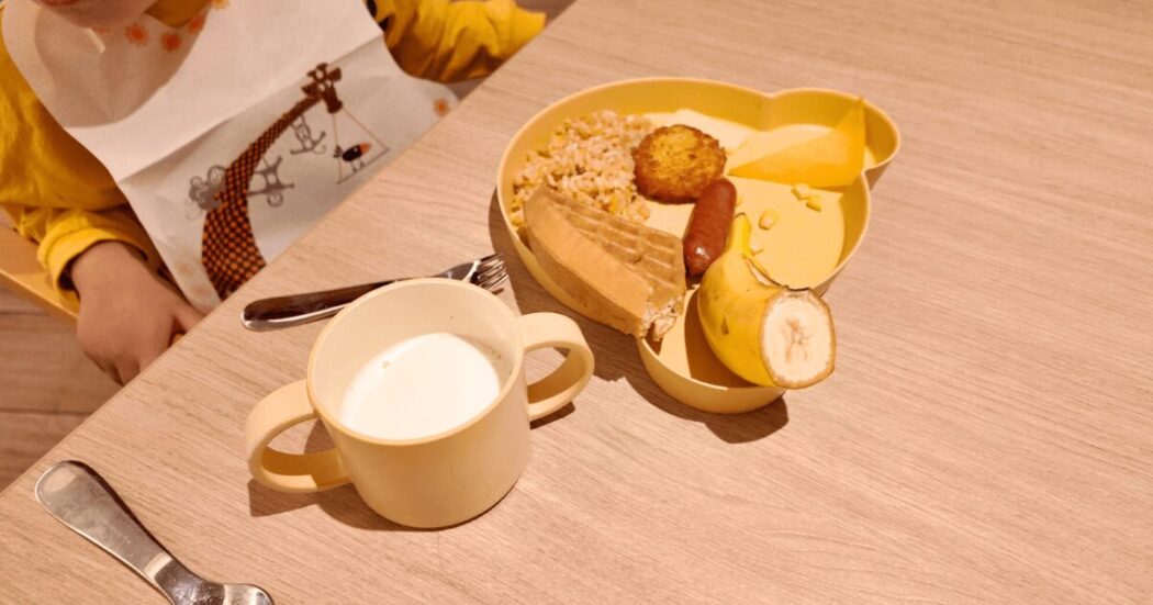 朝食はビュッフェスタイルになっており、今回わたしたちはファミリー向けのソファ席に案内されました。