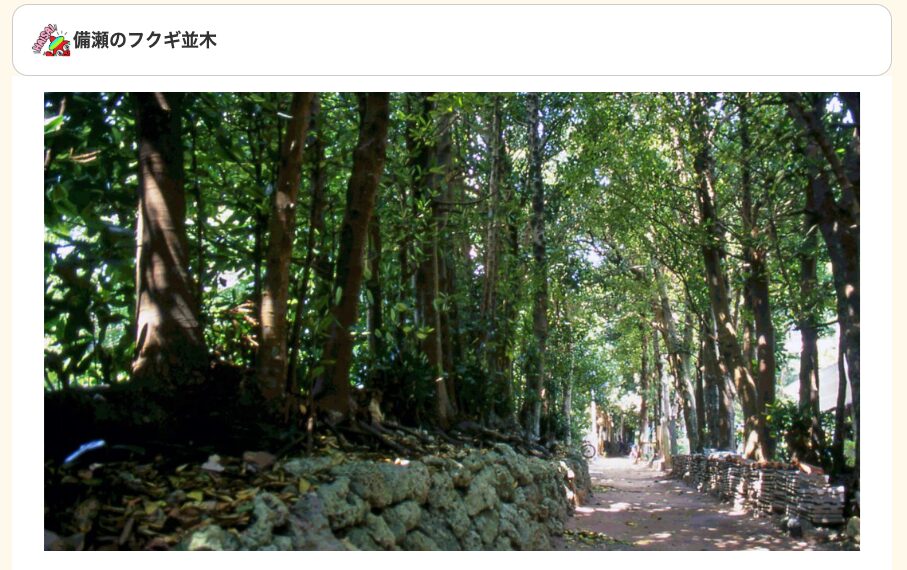 「特別遊べる場所!」というわけではありませんが、フクギに囲まれた並木道には穏やかな時間が流れており、沖縄の自然を感じられました。