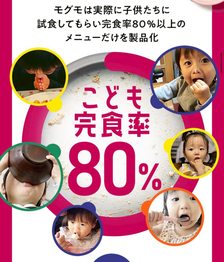 口コミでも多くのママパパからの喜びの声がありますが、それもそのはず、モグモは試食した子どもの完食率80%以上のものだけが商品化されているんです。