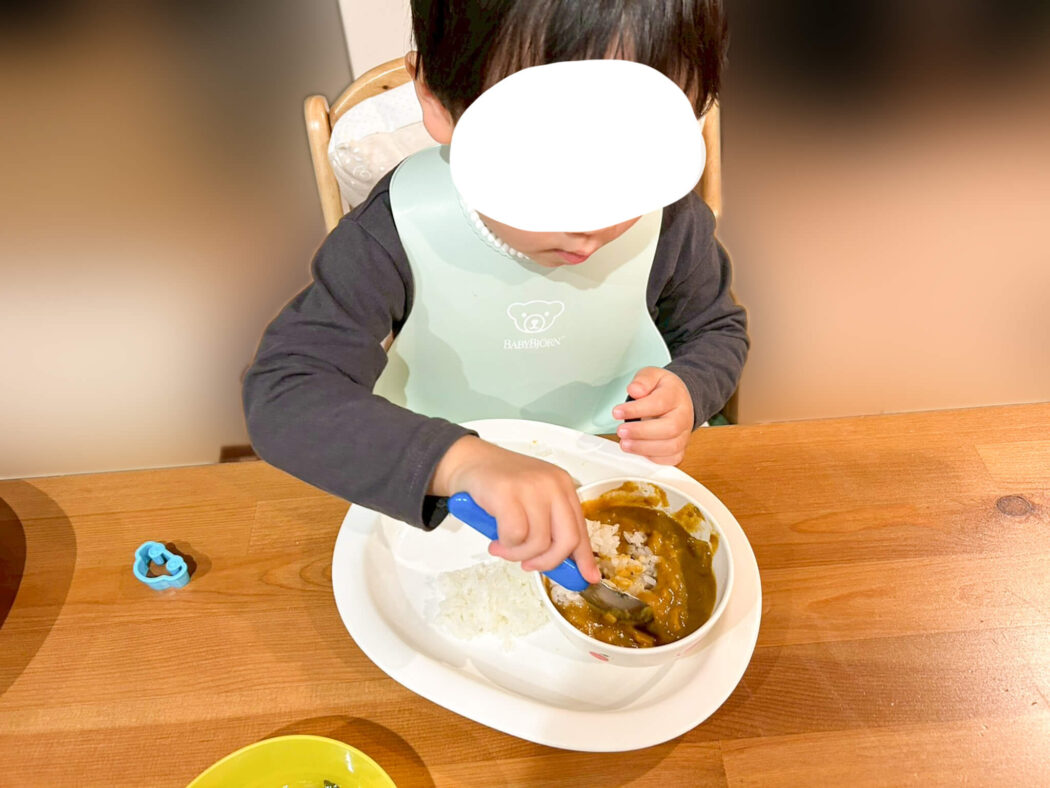 しかも驚いたのが、カレーや丼ものなどご飯におかずが混ざっているものを嫌がる息子が、モグモのカレーは自らご飯をルウに入れて食べていたんです。