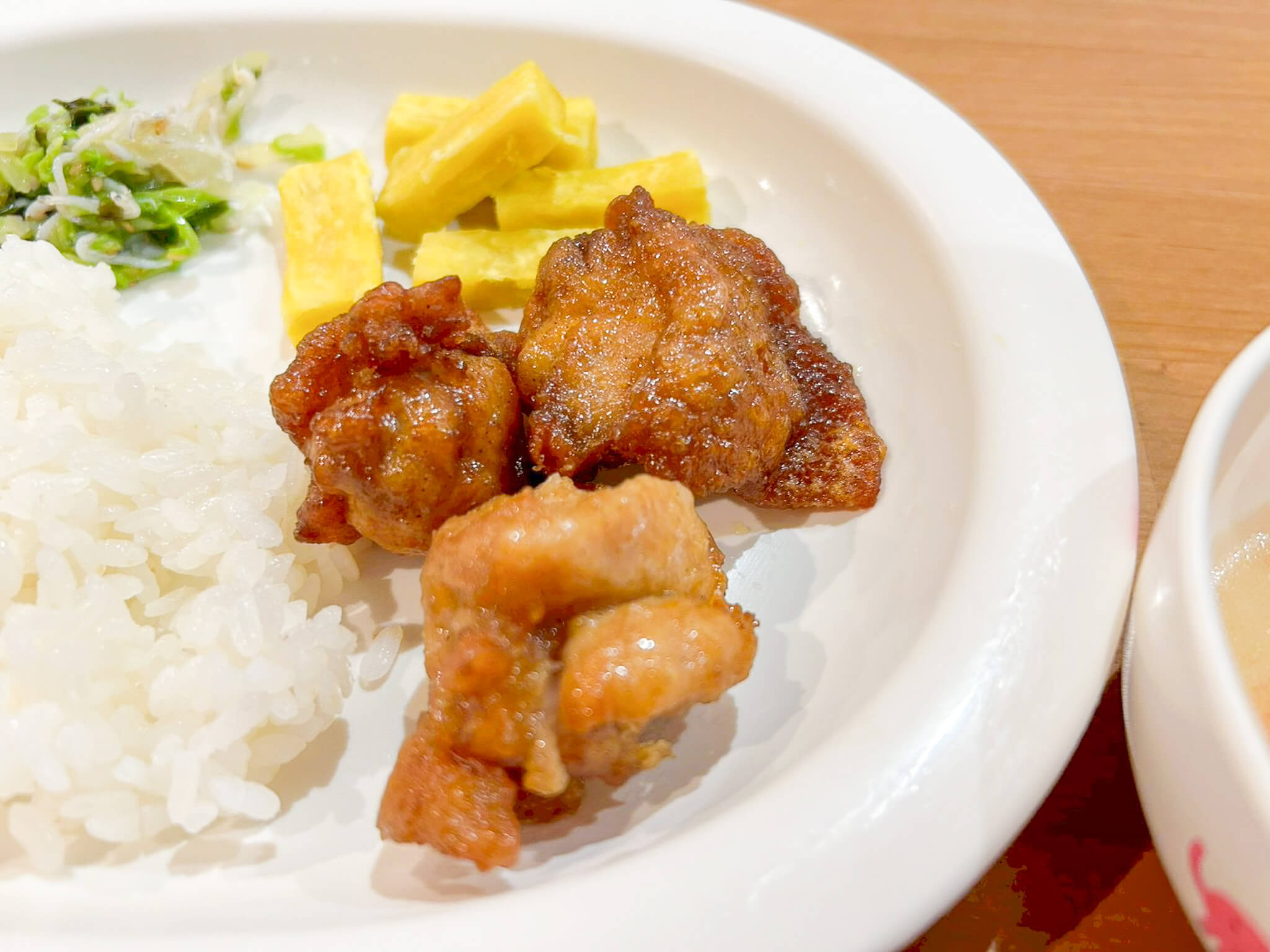 唐揚げなどは、年齢によって追加でカットする必要があります。