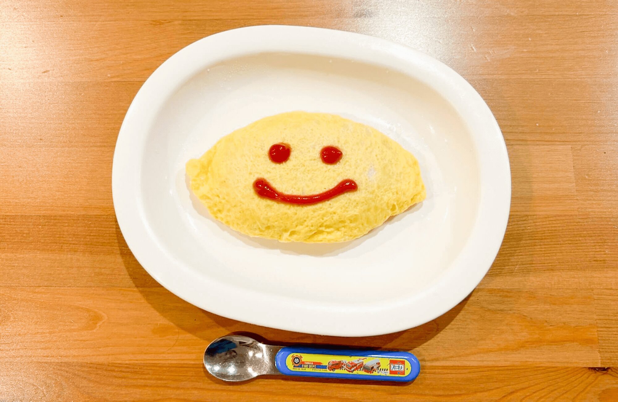 ![]() オムライス | 2/3完食 | やや薄味で、大人にはケチャップありがおすすめ。 最初あまり手をつけないものの、一口食べると気に入ったのかモグモグ食べられた。 |