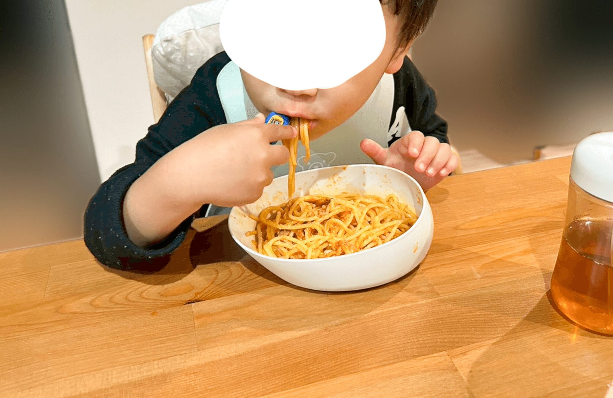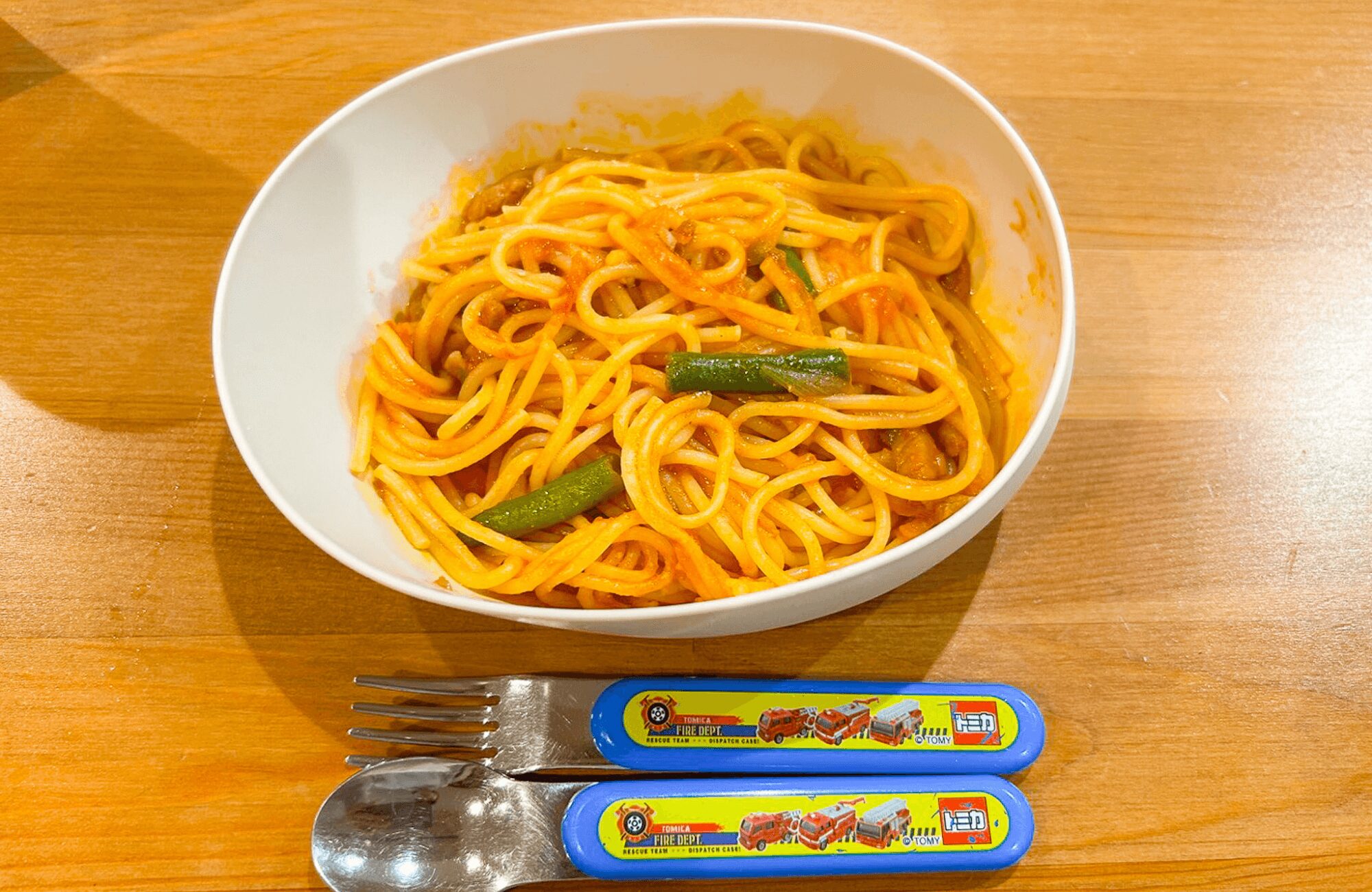 いつもなら一口二口食べたら飽きたり遊び出してしまうのが、このナポリタンはペロリと完食!